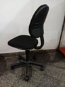Lote nr. 004 - Silla de oficina para espera color azul (parte del respaldero trasero de plástico seco ) Alto:0,75m Ancho: 0,50cm + Silla de oficina giratoria y ajustable con rueditas color negro * Buen estado Alto: 1,00m Ancho: 0,50cm