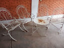 4 sillas de metal + mesa de metal ( 1 silla a reparar la pata )