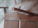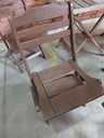 Lote nr. 005 - 4 sillas de madera plegables + 2 mesas de madera ( a reparar todo) ( partes de maderas faltantes, tornillos, etc)