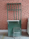 Mueble exhibidor de melamina con rueditas Largo: 1.80m Alto:1.10m Base:0.45cm + rejas: 1 puerta de reja + 1 ventana corrediza de reja Puerta: Alto: 1.98m Ancho: 0.82cm