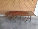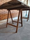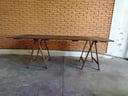 Mesa/Tablón de madera con caballetes (Buen estado) Ancho 91cm, Largo 2.21m, Alto 73cm aprox