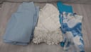 1 pantalón de vestir celeste mandee en talla M + 2 blusas celestes + 1 blusa blanca de encaje