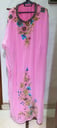 Lote nr. 008 - TÚNICA DE FIESTA LARGA COLOR AZUL FRANCIA CON BORDADO JOYA, HIJAB/CHALINA Y CARTELA A JUEGO TALLE L-XL, con Funda transparente.