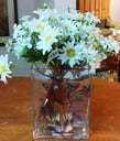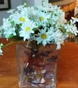 Lote nr. 014 - FLORERO DE VIDRIO DE COLOR TURQUESA , ALTURA 25CM X 16CM DE DIAMETRO (VARIOS COLORES) + FLORES DECORATIVAS