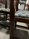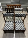 Juego de 8 sillas Hechas de madera, con asientos forrados en tela color gris con negro. Obs.: En la foto se ven sólo 6, pero son 8 sillas.Largo 45cm, ancho 44cm, alto 90cm