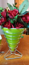 ARTICULO DE DECORACION DE CERAMICA EN FORMA DE CONO Y BASE DE METAL, COLOR VERDE (CHICO ALTURA 10CM X 6CM DE DIAMTRO Y GRANDE 19 CM DE ALTO X 12CM DE DIAMTRO)