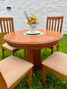Lote nr. 016 - Juego de 8 sillas Hechas de madera, con asientos forrados en tela color gris con negro. Obs.: En la foto se ven sólo 6, pero son 8 sillas.Largo 45cm, ancho 44cm, alto 90cm