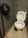 Lote nr. 026 - Baño y accesorios : 1 inodoro con cisterna de ceramica + secamanos electrico + 1 Divisoria con 1 puerta de chapa con estructura metálica Alto: 2,00m Ancho: 0,90cm. (no incluye lavamanos con espejo y mingitorios)