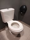 Lote nr. 026 - Baño y accesorios : 1 inodoro con cisterna de ceramica + secamanos electrico + 1 Divisoria con 1 puerta de chapa con estructura metálica Alto: 2,00m Ancho: 0,90cm. (no incluye lavamanos con espejo y mingitorios)