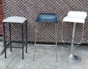 1 BUTACA CON ASIENTO TAPÍZADO EN TELA Y PATAS DE METAL + 1 BUTACA CON ASIENTO EN ACRILICO COLOR BLANCO Y PATAS DE METAL + 1 BUTACA TAPIZADA EN CUERO SINTETICO DE COLOR BLANCO Y PATAS DE METAL