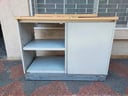Mueble de metal de 2 puertas (le falta una puerta, mesada de madera) (Buen estado) medidas 120,5x78x92 cms. aprox.