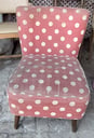 1 SILLON BAJO DE MADERA TAPIZADO EN TELA COLOR ROJA A MOTAS BLANCAS + 1 SILLON DE MADERA TAPIZADO EN CUERO SINTETICO COLOR CRUDO + 2 MESITAS DE MADERA EN COLOR LILA CENICERO INCLUIDO + 2 SILLAS DE MADERA + 1 SILLA TAPIZADA EN CUERO SINTETICO COLOR BLANCO CON PATAS DE MADERA