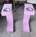 Lote nr. 039 - MESA CON PATAS DE METAL TORNEADAS DE 0,78 CM DE ALTO X 1,78 METROS DE LARGO X 0,32 CM DE ANCHO Y VIDRIO + 2 PLANTERAS DE VIDRIOS + TELEFONO ANTIGUO