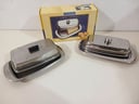 2 recipientes inox. Para mantequilla + 2 bandejas rectangulares