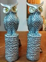 2 LECHUZAS DECORATIVAS EN METAL DE 18 CM DE ALTURA