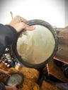 Lote nr. 047 - Antiguedades: Timon de Barco Decorativo de Madera de 8 radios con perillas de agarre, 1m de diámetro.