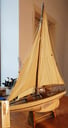 VELERO ANTIGUO DE MADERA EN COLOR BLANCO CON SOPORTE ROTO DE UN LADO DE 56 CM DE ALTO X 40 CM DE ANCHO