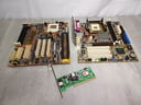 Placa Madre Genérica Socket 7, Placa Madre Genérica Chipset Intel (FW82801DB) Socket mPGA478B, Módem PCI LG.+ Placa Madre ASRock KBNF6G-VSTA con Procesador AMD y 2 memorias RAM. Se desconoce su funcionamiento.