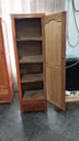 Cama de madera marrón de una plaza (Sin tuercas) + Colchón (Buen estado) + Ropero pequeño de madera con 4 compartimientos, con cajón sin cerradura