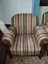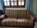 Sofá de 3 cuerpos tapizado en tela a rayas, 1.80 m. aprox. 0.80 m. de alto + sofá individual tapizado en tela a rayas, 0.80 de ancho y 0.80 de alto (Buen estado) A retirar del local del proveedor. Dirección: Itaugua