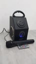 Parlante pequeño con luces laser powerpack con cargador y control + un micrófono inhalambrico a pilas