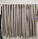 Lote nr. 057 - 2 paños de cortinas de tela lonilla color marrón (para apertura tipo puerta blindex hasta el piso) - alto 2.30 mt c/u - ancho 3.38 mt c/u Riel 2.50 mt. con sus topes de c/ lado y 3 soportes con 2 tornillos c/ soporte