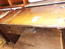 Lote nr. 060 - Escritorio de melamina Ancho: 0,46cm Largo: 1,90 Alto: 0,75cm + silla de oficina negro sin reposa brazos ( falta una ruedita)