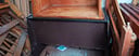 Escritorio de melamina (marrón oscuro) Ancho: 0,59cm Largo: 1,10 Alto: 0,75cm+ silla de oficina marrón con posas brazos