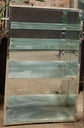 ESTANTE DE VIDRIO (FISURADO AL MARGEN INFERIOR) DE 1,72 METROS DE ALTO X 1,10 METROS DE LARGO X 0,40 CM DE ANCHO + MESITA DE VIDRIO DE 0,76 CM DE ALTO X 40 CM DE ANCHO