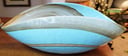 CUENCO TIPO FRUTERO CERAMICO OVALADO EN COLOR TURQUESA Y MARRON DE 16CM DE ALTO X 40 CM LARGO Y 20 CM DE ANCHO