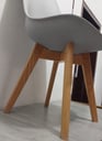 Silla de plástico con patas de madera, asiento acolchonado (cambiar tapizado) (Silla en buen estado)
