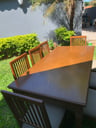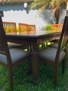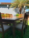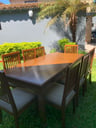 Juego de comedor: Mesa de madera con 8 sillas (medidas 2.00m* 1.00m) Buen estado. A retirar en el local del proveedor Fernando de la Mora, zona multiplaza.