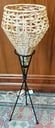 Lote nr. 125 - VELADOR CON BASE DE MADERA TORNEADAS Y PANTALLA COLOR ROJO CON DISEÑOS BORDADOS DE 50CM DE ALTO + VELADOR CON BASE DE CERAMICA COLOR DORADO CON DETALLES Y PANTALLA COLOR DORADO DE 70 CM DE ALTO