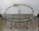 MESITA DE VIDRIO CON PATAS DE METAL TORNEADAS EN FORMA DE CIRCULO DE 45 CM DE ALTO X 80 CM DE DIAMETRO