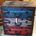 1 MESITAS DE LUZ DE MADERA CON 3 CAJONES DE 56 CM DE ALTO X 50 CM DE LARGO X 33 CM DE ANCHO + 1 BAUL DE MADERA 47 CM DE ALTO X 42 CM DE ANCHO X 37 CM DE PROFUNDIDAD